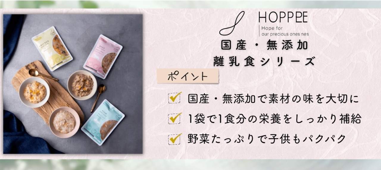 HOPPE BABY FOODのおすすめのアイテムは「国産・無添加 離乳食シリーズ」です。