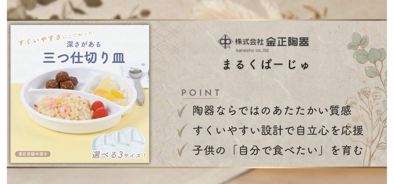 赤ちゃんの成長に寄り添うやさしいベビー食器シリーズのまるくぱーじゅ。丸みのある形と適度な深さで、子どもの手でも食べこぼしを抑えやすく、すくいやすさを考えた設計。陶器ならではのあたたかい質感と安心の日本製で、離乳食〜幼児食まで長く使えます。口コミでは「子どもが自分で食べる意欲が出た」「毎日のごはんが楽しくなった」と高評価。