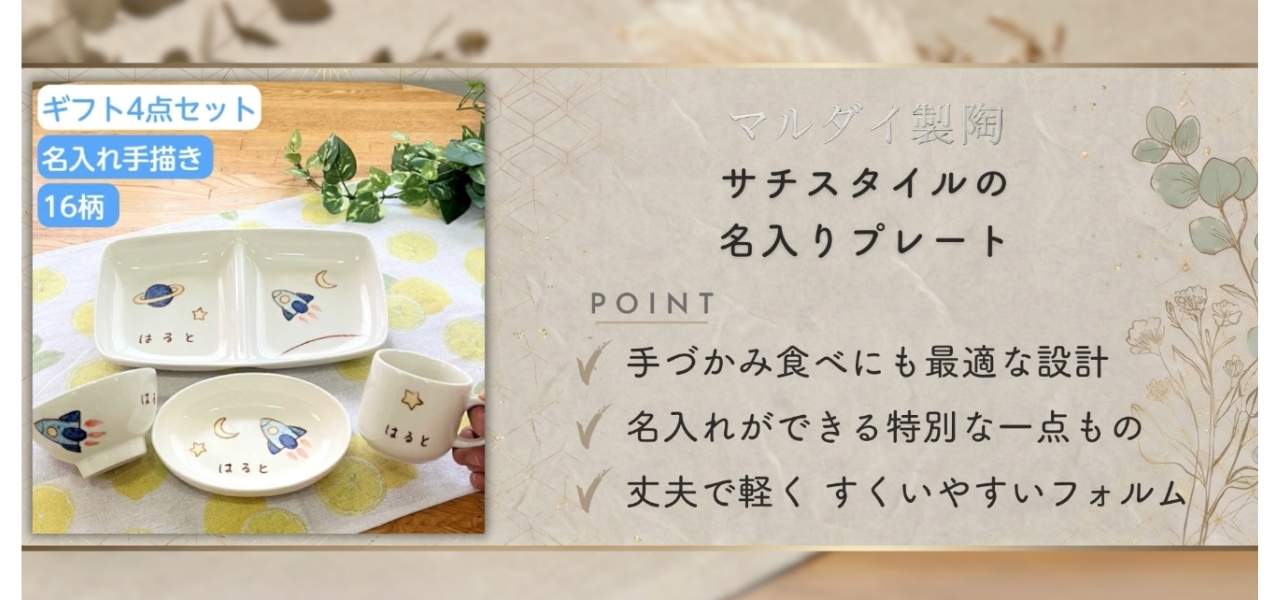 マルダイ製陶のおすすめのアイテムは、サチスタイルの名入りプレートです。