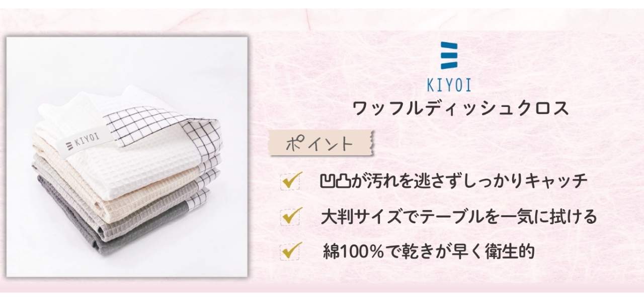キヨイのおすすめアイテムは「ワッフルディッシュクロス」です。