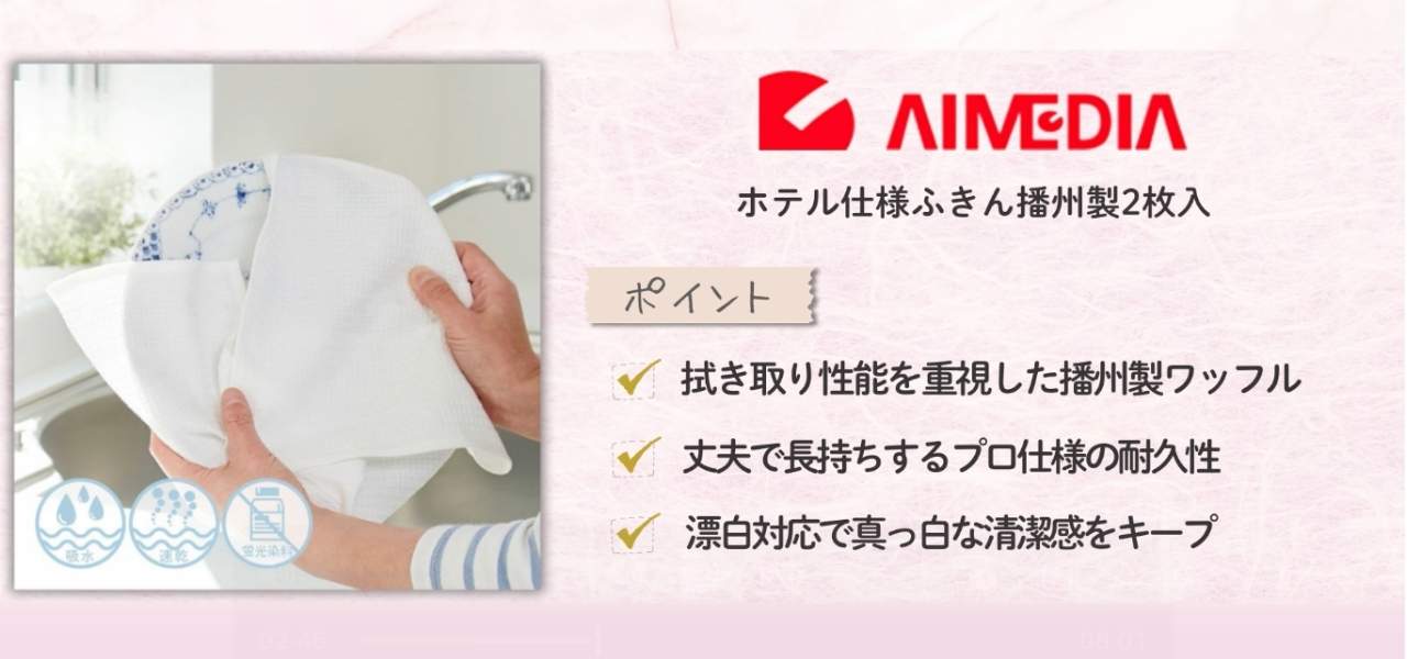 アイメディアのおすすめアイテムは「ホテル仕様ふきん播州製2枚入」です。