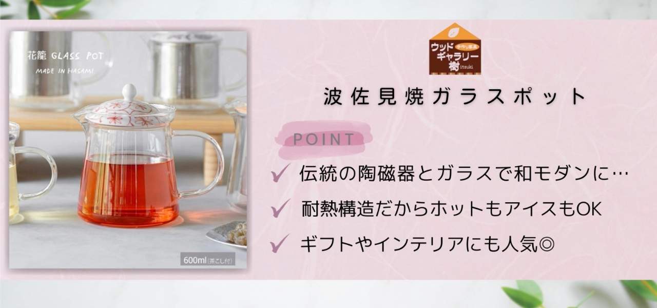 ウッドギャラリー樹のおすすめのアイテムは、波佐見焼のガラスポットです。