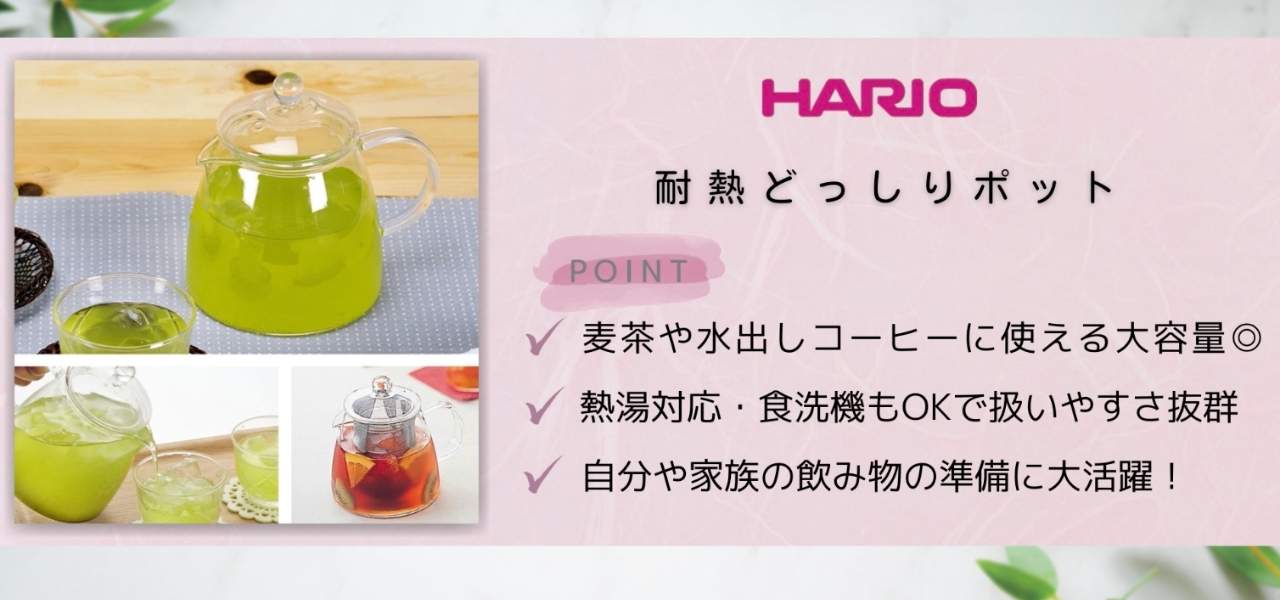ハリオのおすすめのアイテムは、耐熱どっしりポットです。