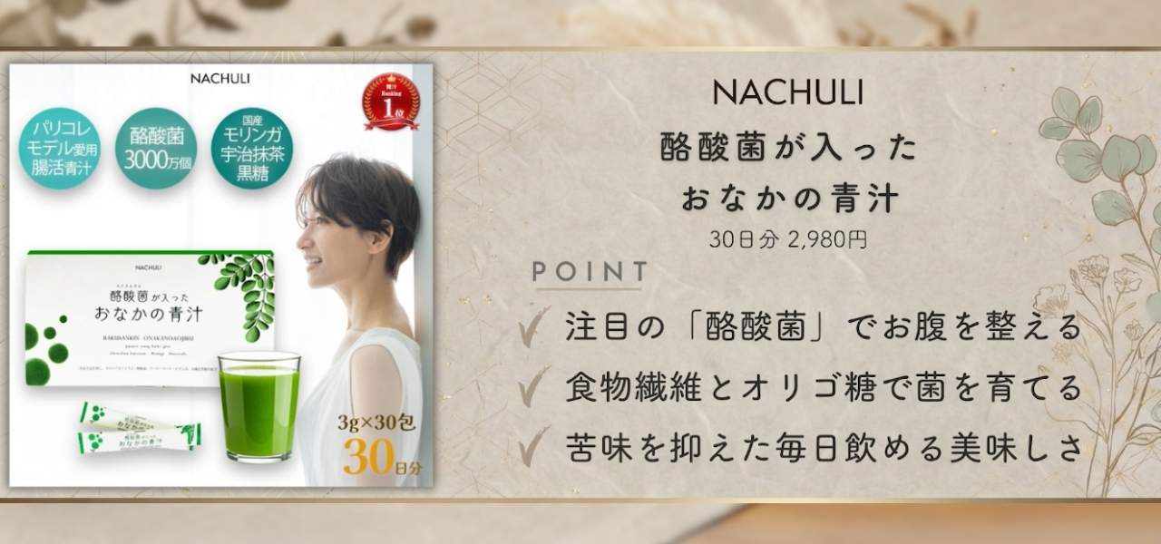 NACHULI(ナチュリ)のおすすめのアイテムは「酪酸菌が入ったおなかの青汁」です。