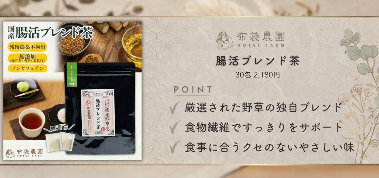 布袋農園のおすすめのアイテムは「腸活ブレンド茶」です。