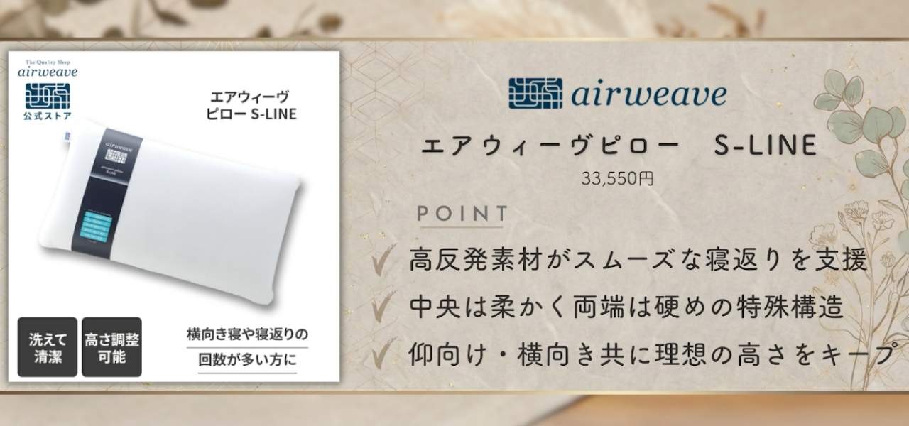 エアウィーブのおすすめアイテムは「エアウィーヴピローS-LINE」です。