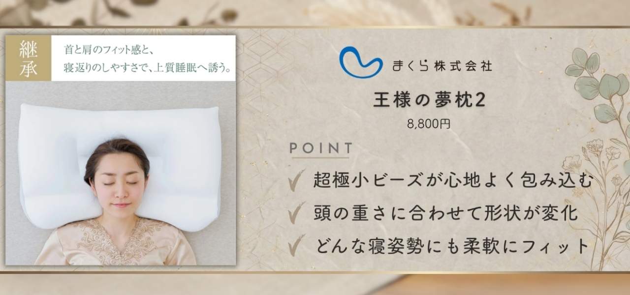 まくら株式会社のおすすめアイテムは「王様の夢枕2」です。
