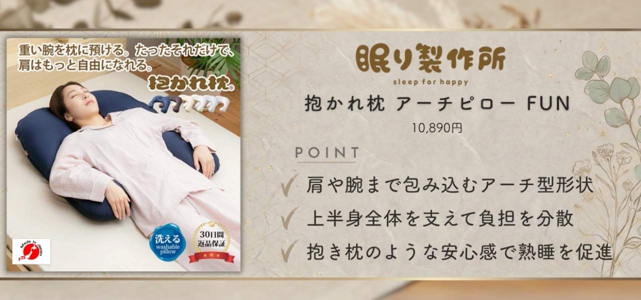 眠り製作所のおすすめアイテムは「抱かれ枕 アーチピロー FUN」です。