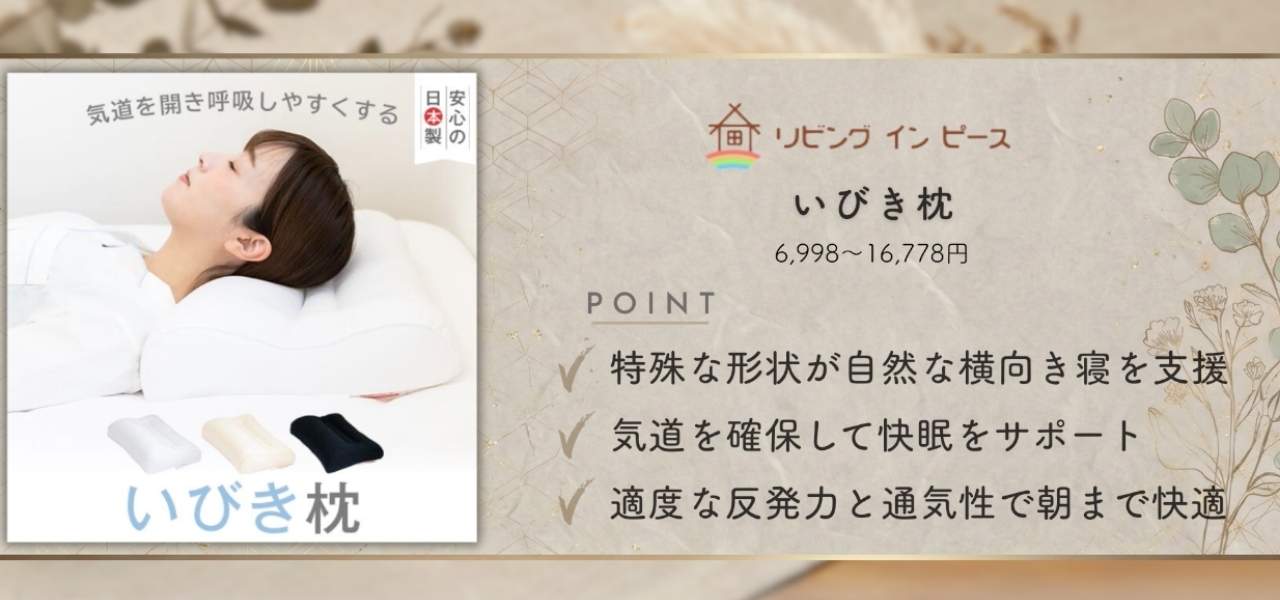 リビングインピースのおすすめアイテムは「いびき枕」です。