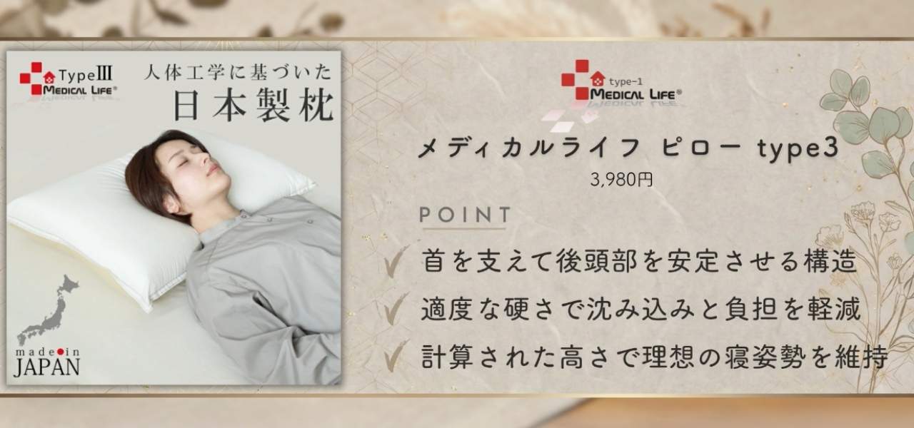 メディカルライフのおすすめアイテムは「メディカルライフ ピロー type3」。