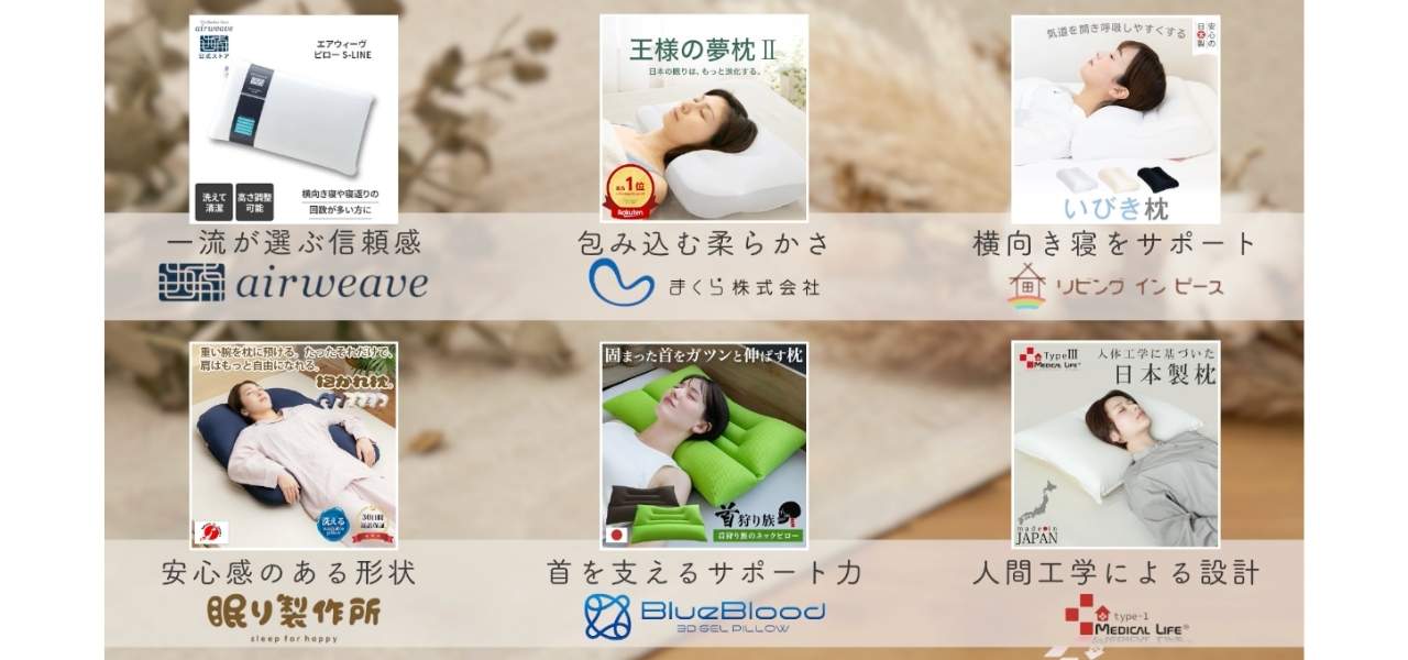 2つめは、枕の専門店として多くのオリジナル商品を展開している、まくら株式会社です。寝心地と体圧分散にこだわった商品開発を継続。長年の販売実績と改良を重ねてきたノウハウが、多くのリピーターを生んでいるブランドです。