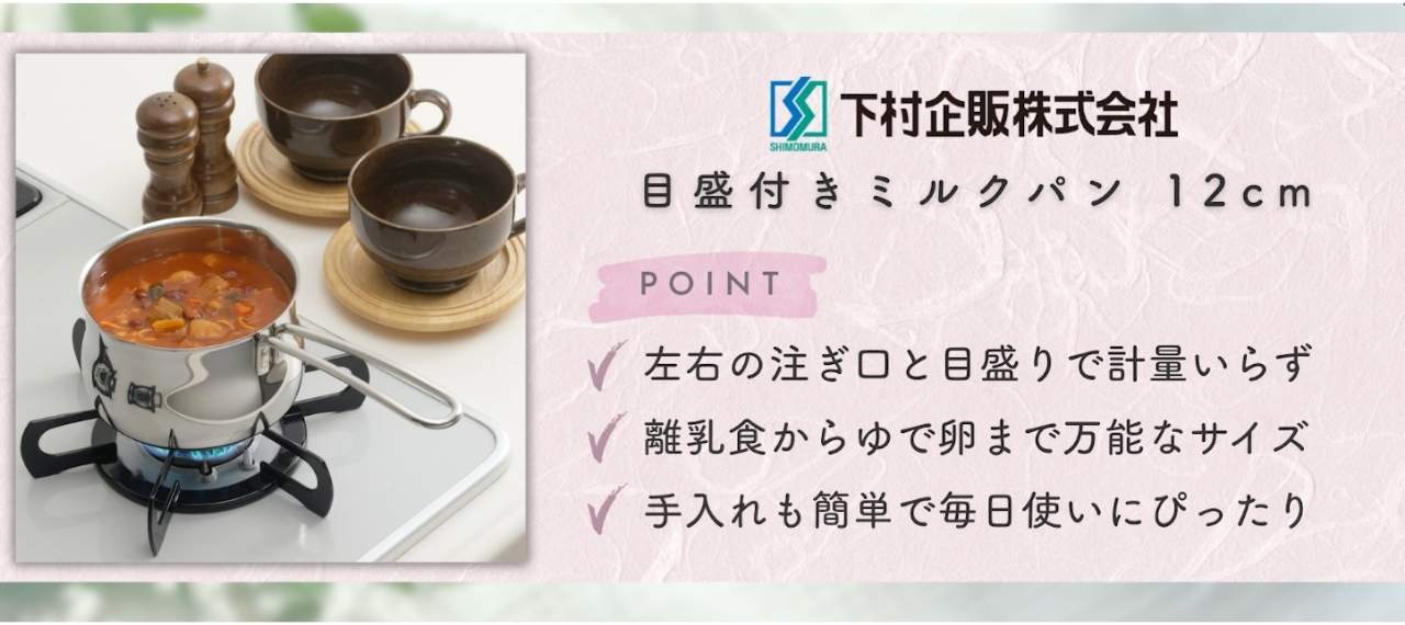 下村企販のおすすめは「目盛付きミルクパン 12cm」です。