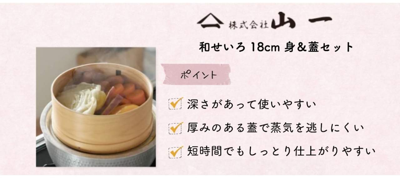 山一のおすすめのアイテムは「和せいろ 18cm 身&蓋セット」です。