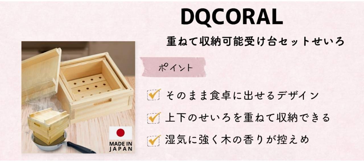 DQCORALのおすすめのアイテムは「重ねて収納可能受け台セットせいろ」です。