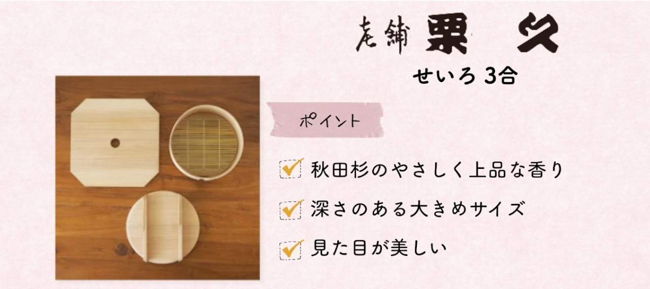 栗久のおすすめのアイテムは「せいろ 3合」です。