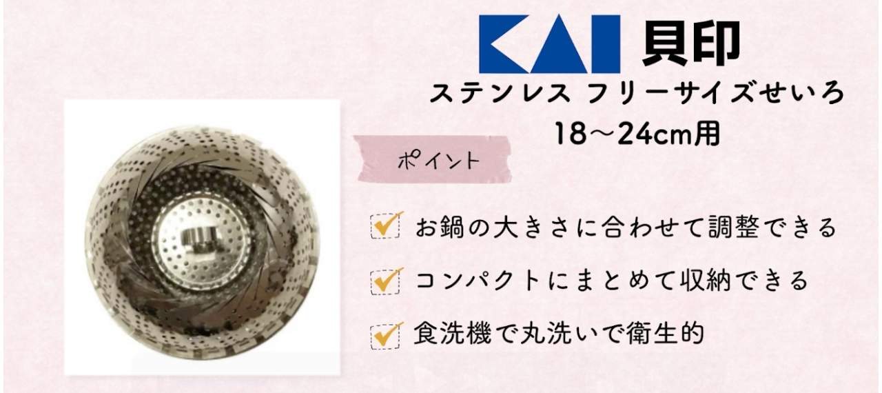 貝印のおすすめのアイテムは「ステンレス フリーサイズせいろ 18〜24cm用」です。