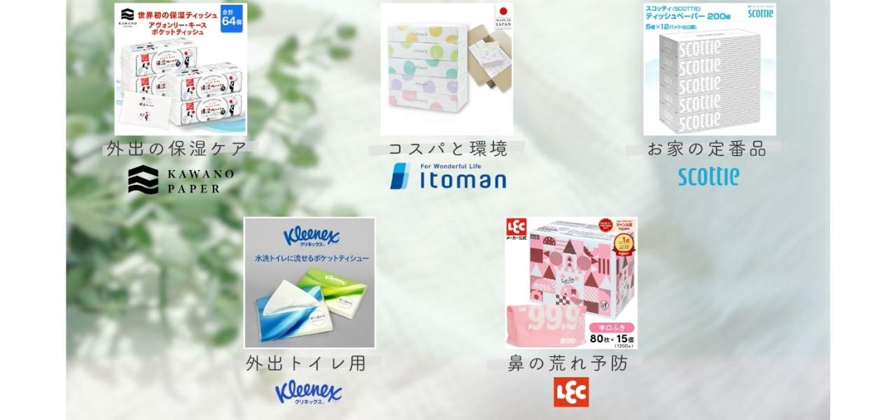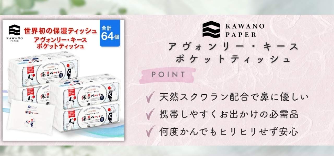 1つめは、世界で初めて保湿ティッシュを開発したパイオニアで、高知県に拠点を置く老舗メーカーの河野製紙です。独自の技術で潤いと柔らかさを追求した製品は、敏感肌の方や花粉症に悩む層から大きな支持を集めています。